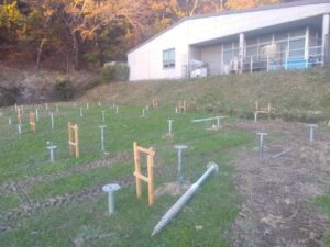 本工事では、自社オリジナルのスクリュー杭を使用しています。