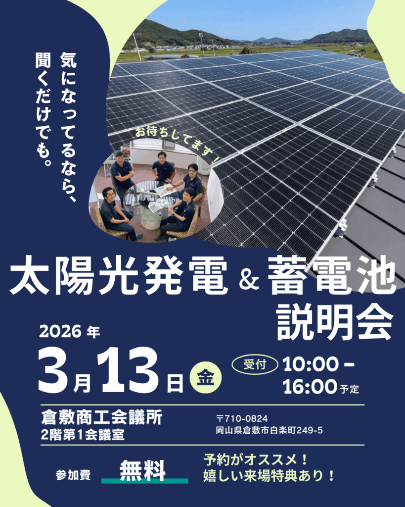 太陽光発電・蓄電池無料説明会を開催します!【2026年3月13日@倉敷商工会議所】
