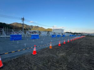 岡山県真庭市、工場内の空き地に自家消費太陽光発電システムを設置現場です!